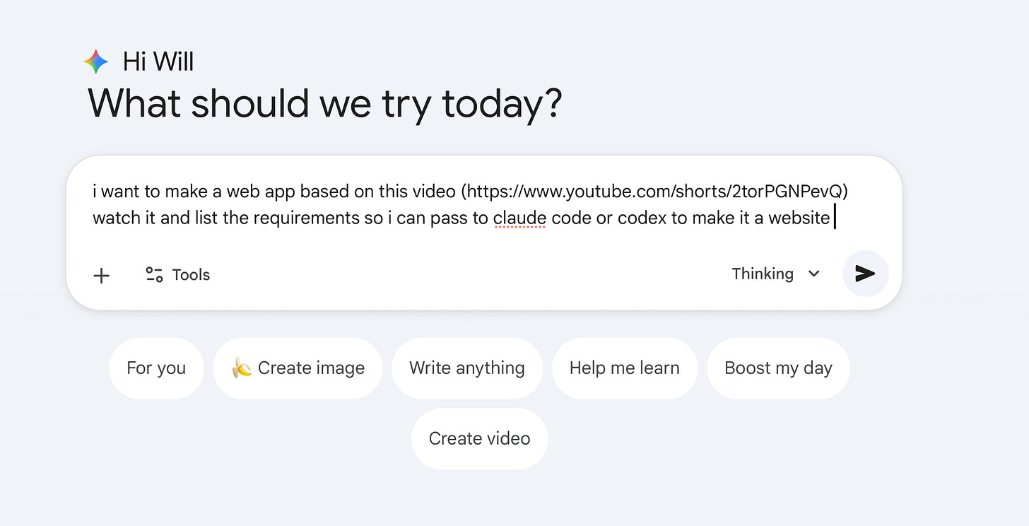 I’ll show the first pass of generating a site using this logic by asking Google’s Gemini to watch the video and give me a plan to turn the concept into a website (prompt link)